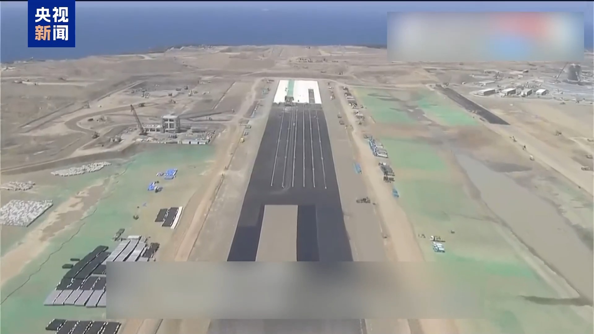 日本媒体记者 道山幸司:马毛岛已经进入视野,开工两年半有余,一座巨大基地正逐渐显露雏形。岛屿中央的跑道正在建设中,已经开始铺设黑色路面,跑道正一点点显露雏形。