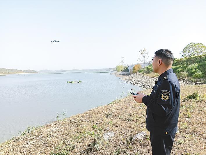 湖北日报讯 (记者刘毅、通讯员詹钧名)“呜……”11月24日,一架无人机腾空而起,沿着赤东湖岸开始当天的巡查。负责无人机操控的蕲春县生态环境保护综合执法大队四中队中队长陈进刚笑着说:“晚上人查,白天机查,我们早已习惯这样的‘白+黑’工作模式。”