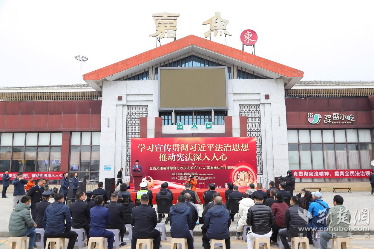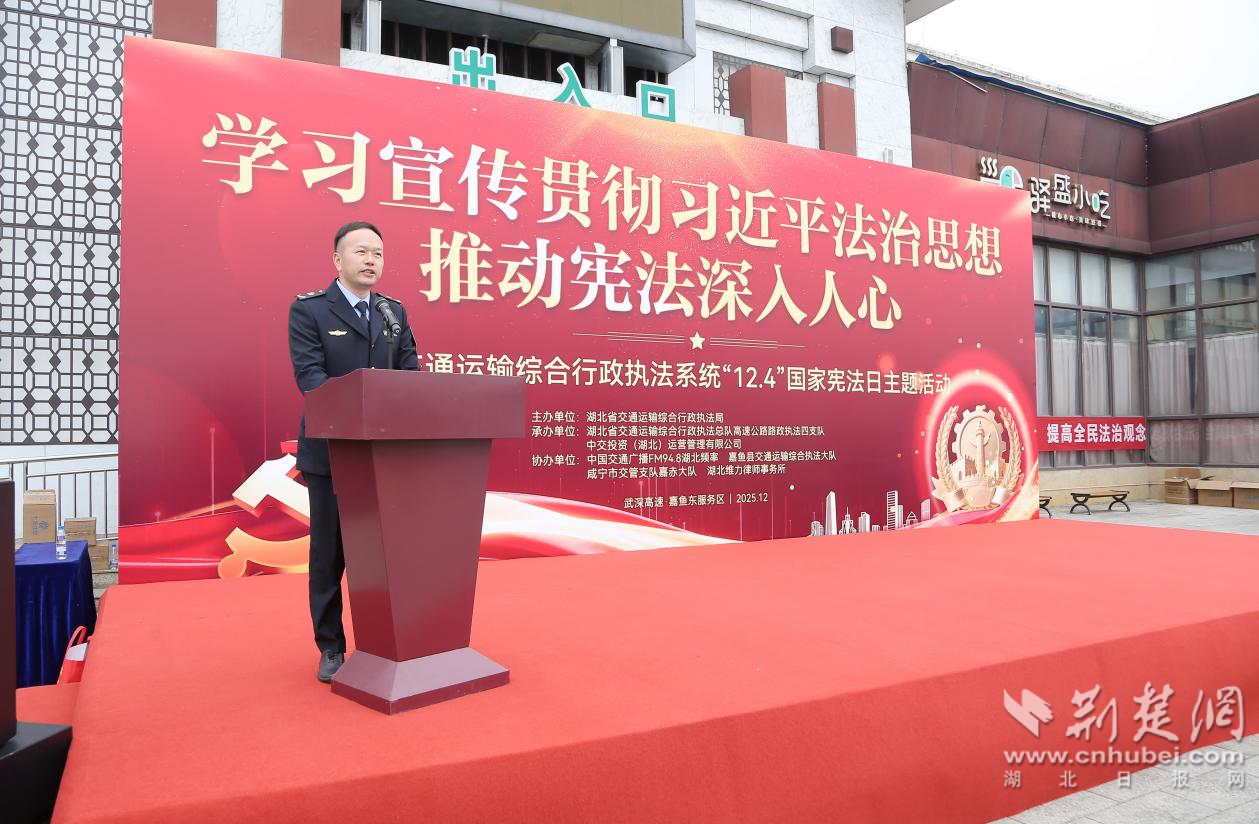 荆楚网(湖北日报网)讯(记者张赛赛 通讯员王丽)12月4日,第十二个国家宪法日当天,由湖北省交通运输综合行政执法局主办的宪法宣传主题活动,在武深高速嘉鱼东服务区西区热闹启幕。