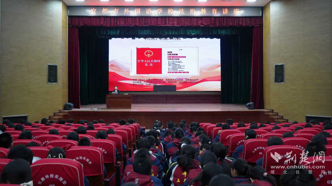 荆楚网(湖北日报网)讯(通讯员周宇)12月3日,宜都市人民检察院检察官原梦梦以法治副校长身份走进宜都市外国语学校,在第十二个国家宪法日来临之际,为学生们带来了一堂别开生面的宪法课。