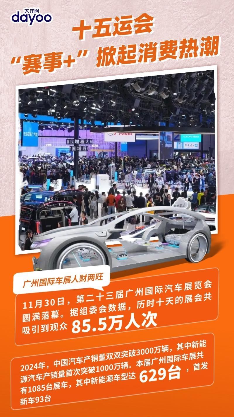“白天赏花、夜晚观灯、全天享赛”!11月以来,第十五届全国运动会吸引着八方宾朋,给广州带来了巨大的经济“流量”。此外,2025年广州国际灯光节、广州国际车展等活动接踵而至,市民游客在广州既能感受体育赛事氛围,又能享受美食、美景、购物的快乐。这些集吃、住、行、游、购、娱于一体的体育赛事消费新场景,恰恰是广州消费市场从“点”到“面”、从“量”到“质”升级的生动写照。一组海报,看“赛事+”掀起消费热潮。