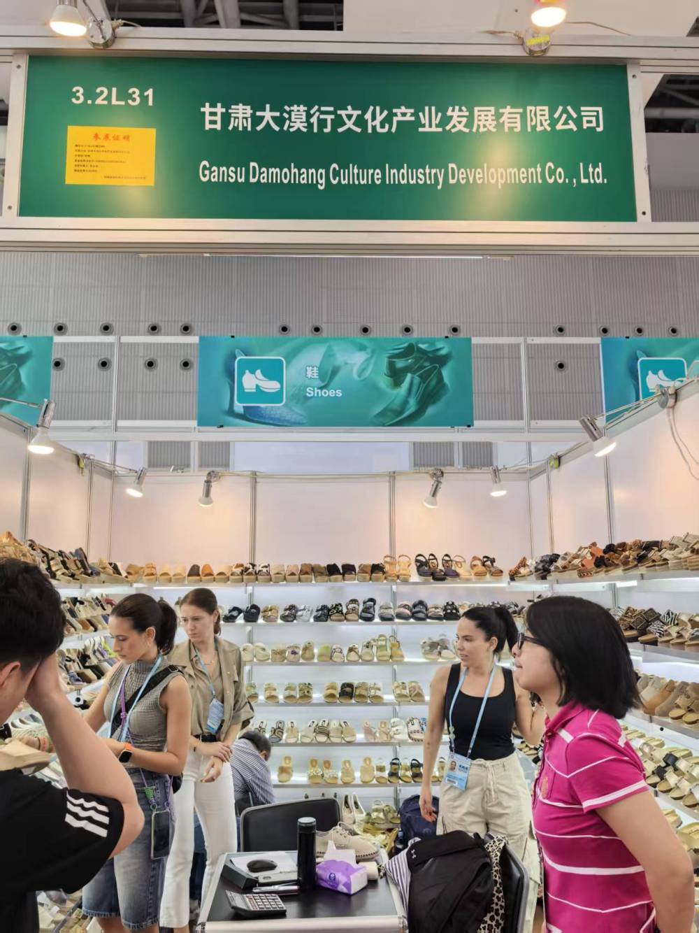 甘肃大漠行文化产业发展有限公司在广交会上展览麻编产品。(受访者供图)
