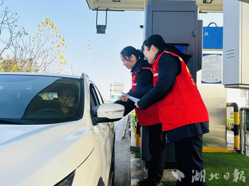 温馨提示,守护行车安全。“师傅,冬天在车里休息,千万不能紧闭车窗长时间开空调,容易一氧化碳中毒,非常危险!”在应城北收费站道口,“爱路Ai-Lu”志愿者们一边向过往司乘递上精心制作的《冬季行车安全须知》宣传单,一边耐心讲解冬季行车注意事项。