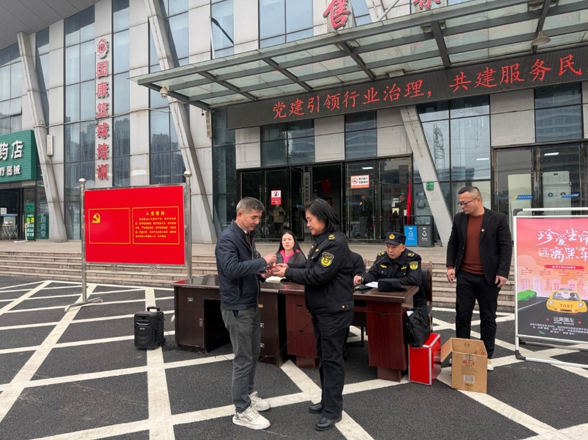 实践环节在市汽运公司站前广场拉开帷幕。13名执法大队党员联络员与结对的党员司机现场对接,授予“党员先锋岗出租车”标识牌和“党建共建联系卡”,建立起常态化沟通机制。全体党员还向过往市民发放《拒绝非法营运倡议书》,并集体面向党旗重温入党誓词,凝聚起联动共建的强大共识。