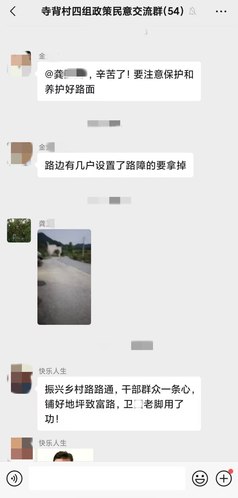 以142个村民小组为单位建立微信群,明确包保驻村干部、村干部或志愿者为群管理员,负责日常信息发布、问题收集和互动引导,确保每户村民都能融入“线上网格”,实现服务“零距离”覆盖。