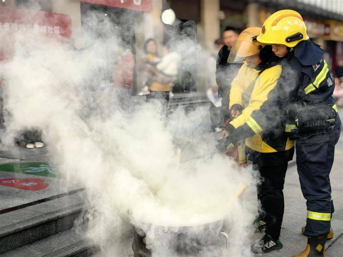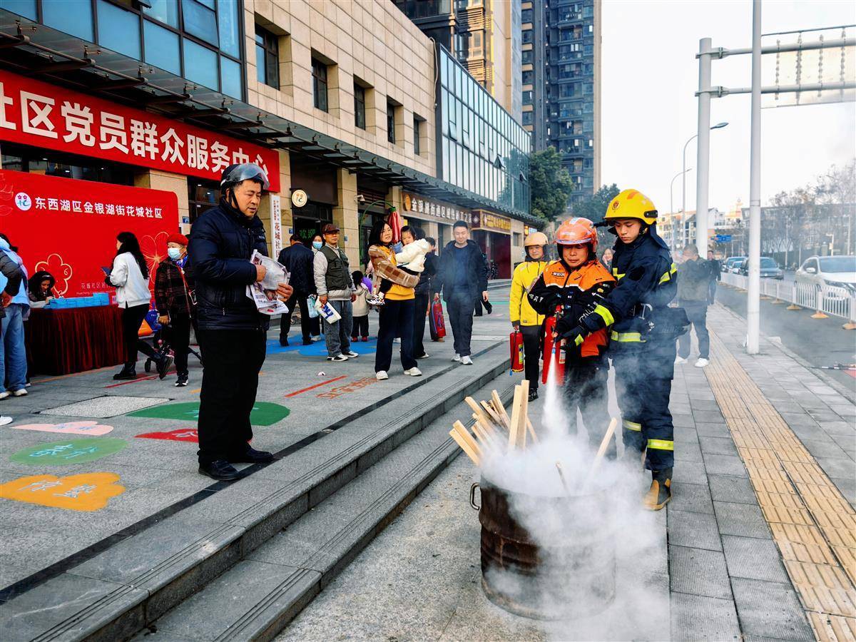 12月5日下午,武汉东西湖区金银湖街花城社区举办了一场以“志愿‘燃’情,安全‘防’行”为主题的消防宣传日活动。活动通过理论与实操相结合的方式,向居民普及消防安全知识,提升应急处置能力。活动现场设置了消防知识有奖问答、灭火器与消防栓实操教学、消防车参观体验等六大环节,吸引了社区居民、志愿者、外卖小哥及青少年等百余人参与。(湖北日报通讯员 龚艺 何嫚 摄)