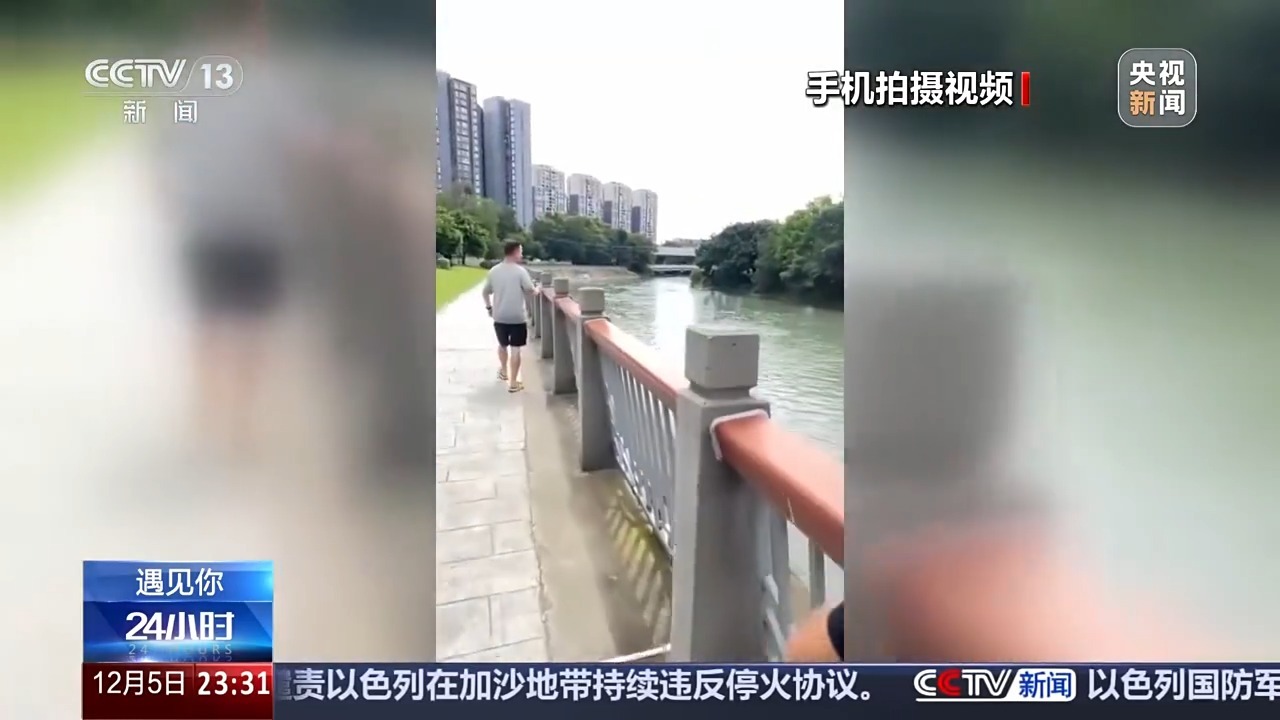 白玛初紧紧盯着落水者往下游跑,追了几十米,利用修剪花枝的剪刀,剪开了系在护栏上的救生圈。