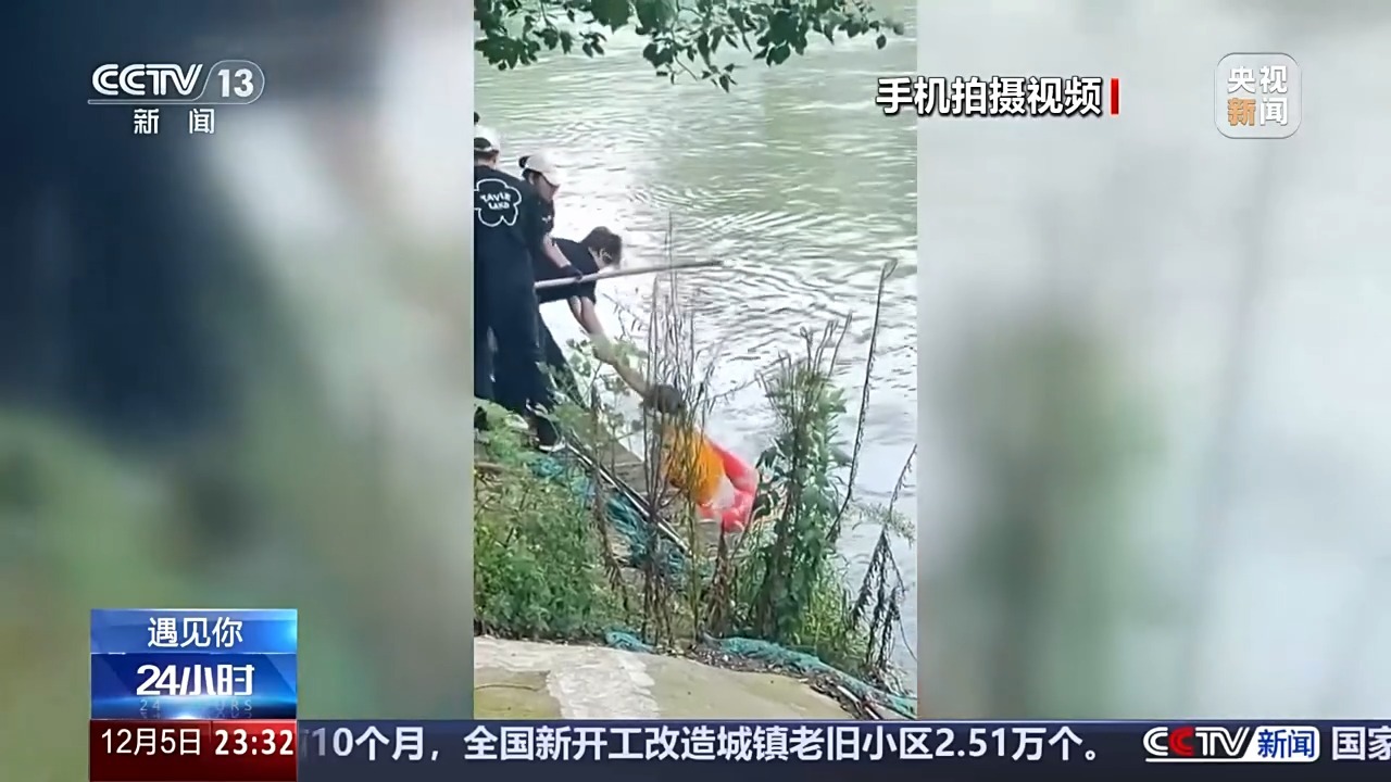 当时,正好路过河边的朱旭,用手机记录下了救援的全过程。
