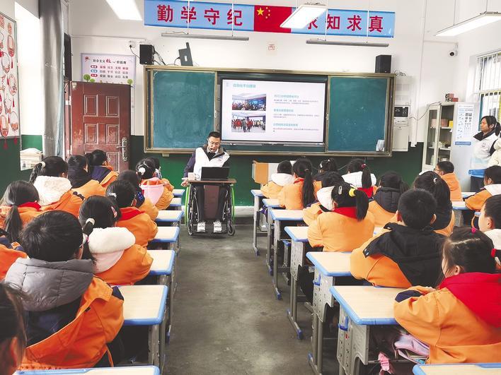 他的力量很小,小到没办法弯腰捡起河边的垃圾,也无力打捞库区的漂浮物,但他的意志却很坚定,熬无数个日夜,制作十几种课件,带着他组建的益友社工小水滴助残志愿服务队,走进学校、社区和乡村,一遍又一遍地向大家讲述守水护水的意义。