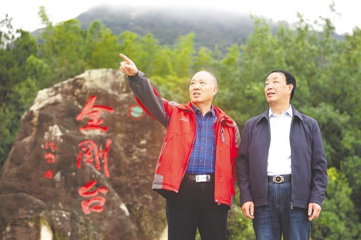 10月17日,曾祥有(右)、曾祥海远眺祖母张敏曾经战斗生活过的大别山深处。(湖北日报全媒记者 何宇欣 摄)