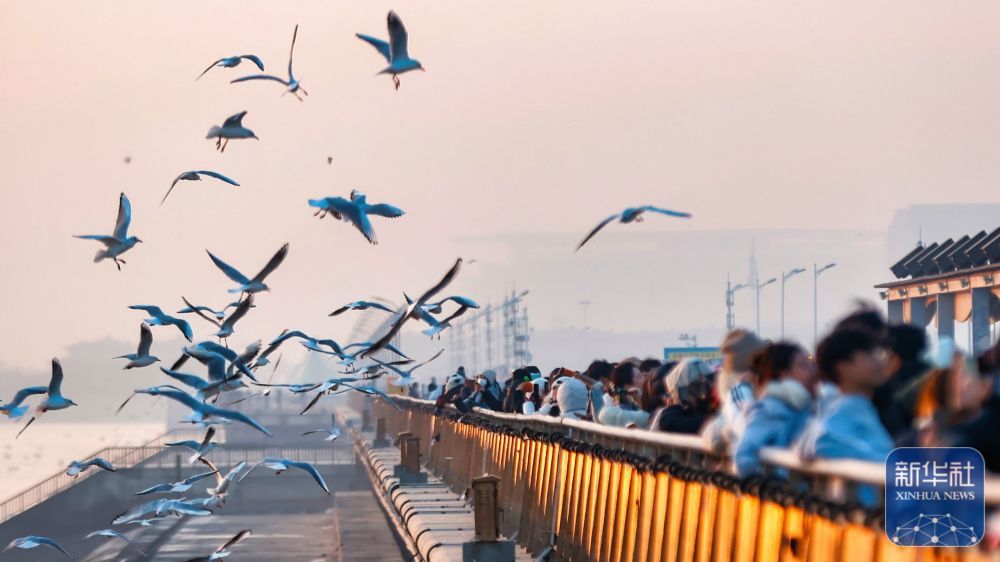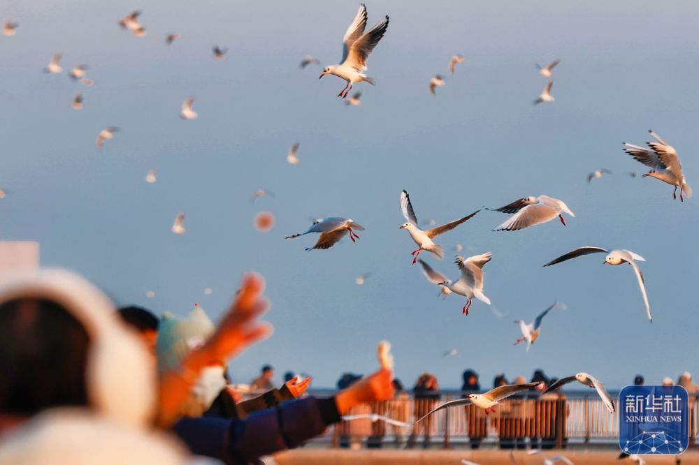 近日,天津迎来候鸟迁徙高峰。清晨的滨海新区东疆亲海公园,成群的海鸥与游人互动,构成城市一道美丽的风景线。