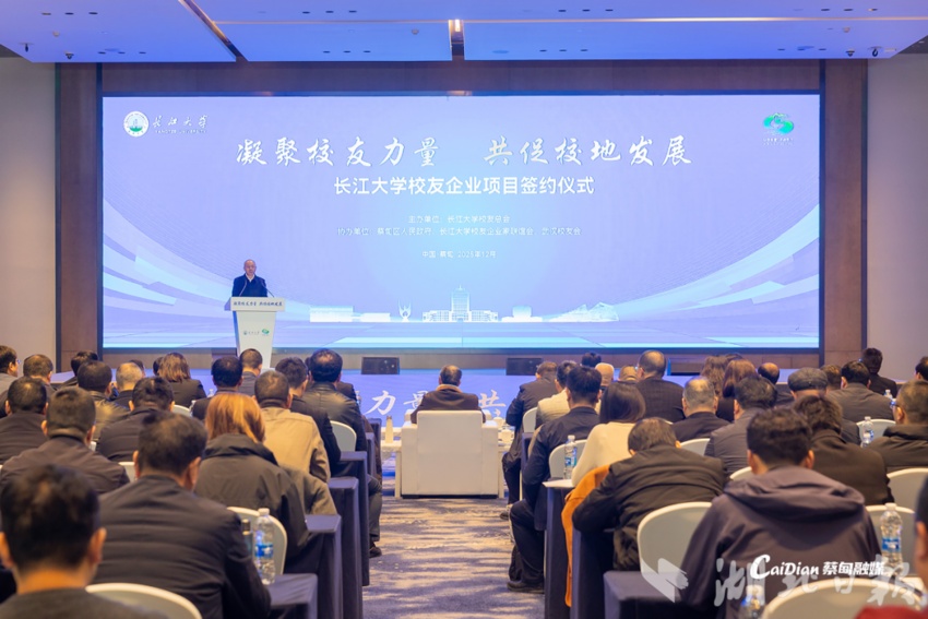 12月6日,长江大学2025年度校友企业家联谊会在蔡甸区举行,来自全球52家校友会代表、百余位杰出校友企业家齐聚一堂、共叙情谊、共促发展。13个校友企业项目集中签约、总投资27亿元。长江大学校长、长江大学校友总会会长刘勇胜,蔡甸区委书记余从斌,区长黄元峰,长江大学党委副书记敖廷华,武汉校友会会长夏震,校友企业家联谊会会长吴何洪出席活动。