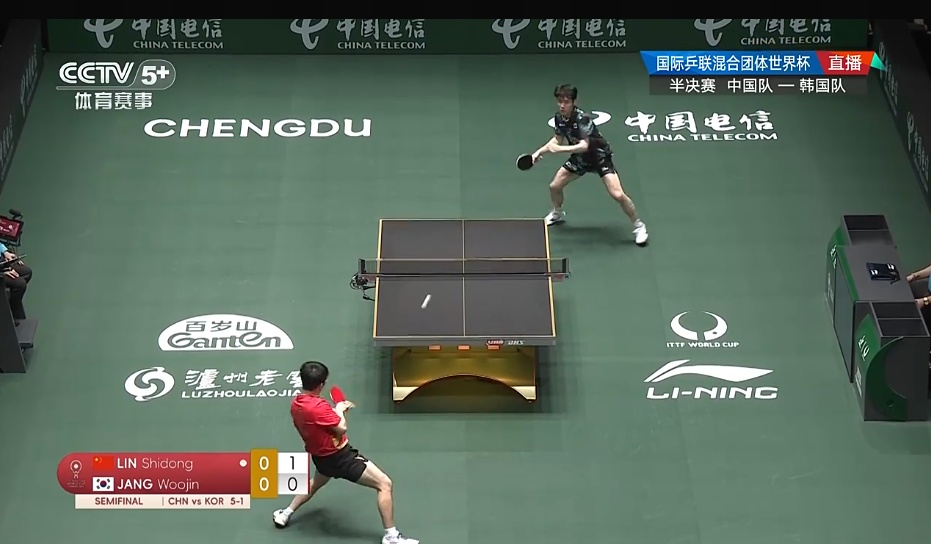 第三场男单比赛,林诗栋2-1战胜张禹珍,三局比分为:11-4、11-3、5-11。中国队大比分7-2领先。