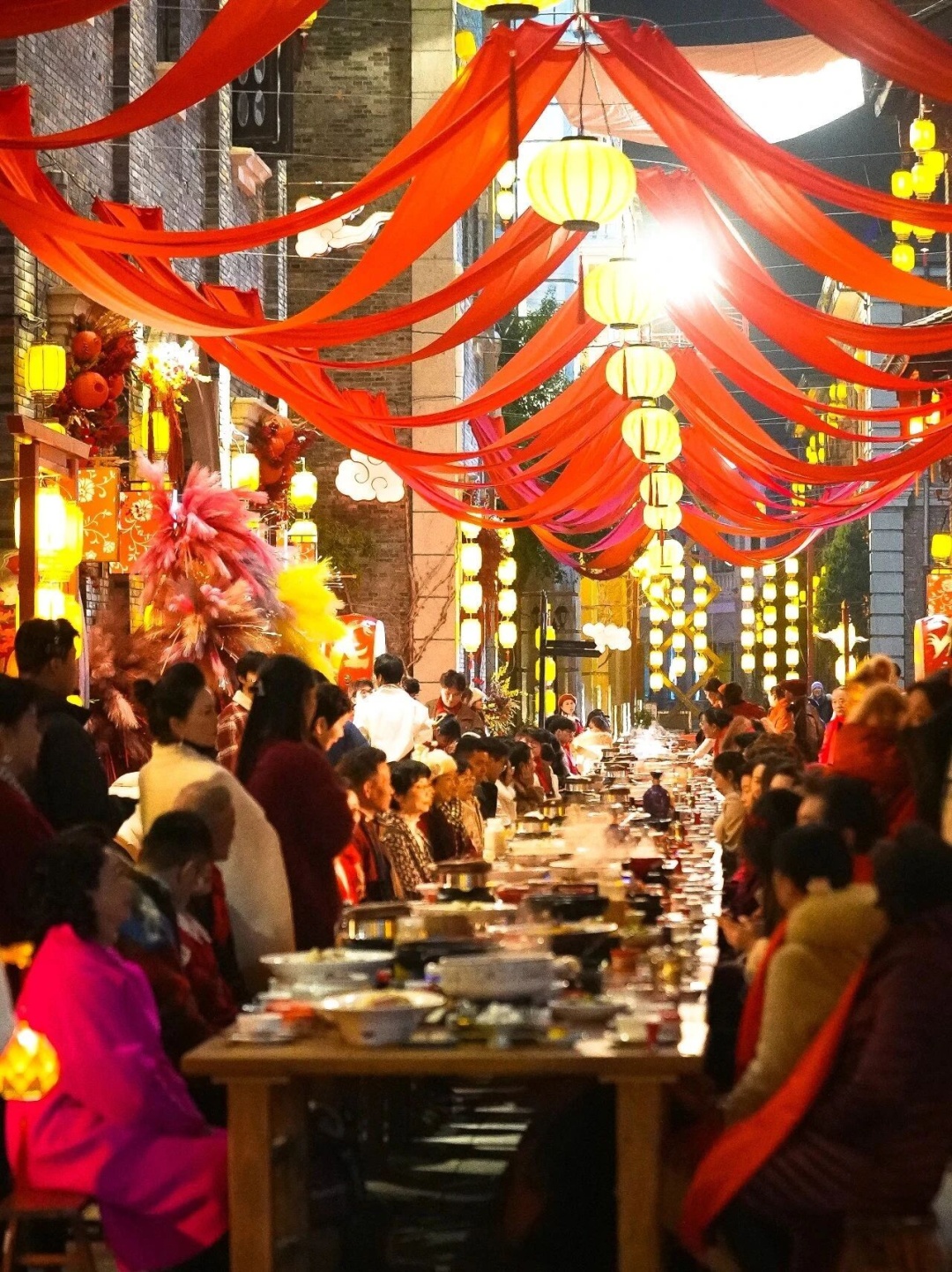 ▲2025年春节联欢晚会武汉分会场,汉口里长桌宴场景