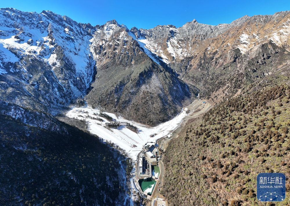 ↑ 这是12月5日拍摄的汶川羌人谷滑雪场(无人机照片)。