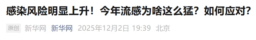 今年流感的核心变化是流行毒株变了!上一季主导的甲型H1N1退居次位,甲型H3N2成为本季主流毒株。由于H3N2近两年没有大规模流行,人群普遍缺乏针对性免疫屏障,感染风险明显上升。