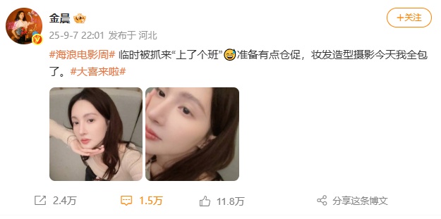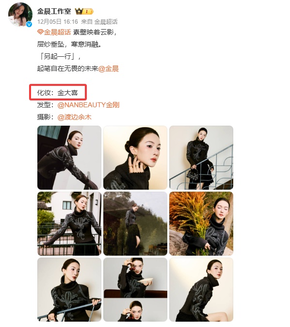 当晚,金晨本人发文回应:临时被抓来“上了个班”,准备有点仓促,妆发造型摄影今天我全包了。