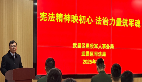 区退役军人事务局联合区司法局特邀北京京师(武汉)律师事务所薛新岳律师,走进驻区某部队开展“宪法精神映初心,法治力量筑军魂”主题宣传活动。活动聚焦官兵核心关切,薛律师以“宪法与军人权益保障”为核心,结合宪法、军人地位和权益保障法、退役军人保障法等重点法规,通过案例解读、条文释义、互动问答等形式,深入浅出讲解军属就业安置、子女入学、婚姻家庭、财产纠纷、退役安置等热点问题,引导官兵树立法治意识,让法治力量成为强军兴军的坚实后盾。