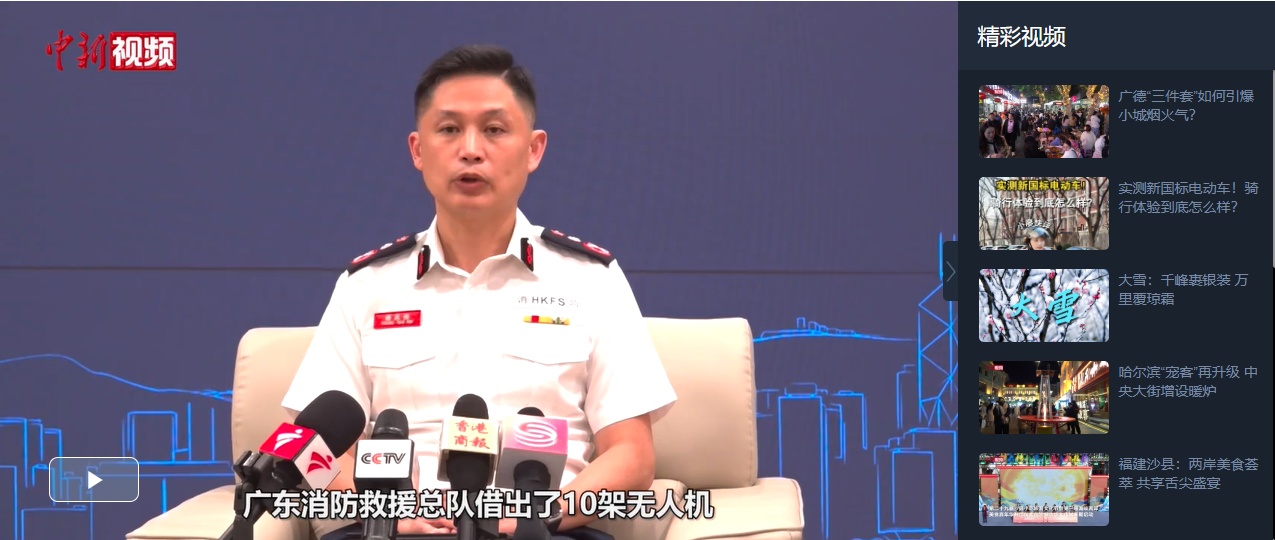12月6日,香港特区政府消防处处长杨恩健接受记者采访时表示,在香港大埔宏福苑火灾救援中,广东消防救援总队借出的10架无人机,显着提升了无人机在火场监测和搜救的效率。这些无人机借助热成像技术,可精准定位楼宇火势严重区域,为消防部门制定灭火策略提供关键依据。在其中一起救援中,无人机成功监测到天台两名待救人士,助力消防人员快速将其安全转移至地面。