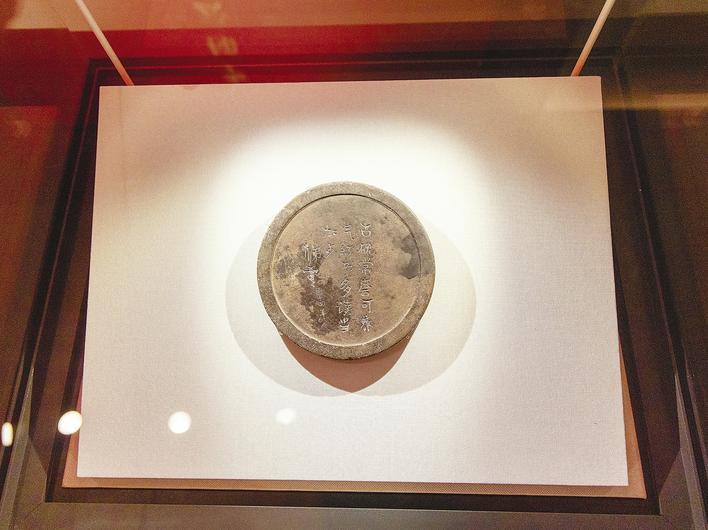 在罗田县博物馆,一方深灰色的圆形砚台静静地躺在展柜里。砚台上隽永的字迹刻着“古砚常磨可养气,红书多读当加餐”,并落款“梯云 民国十四年”。