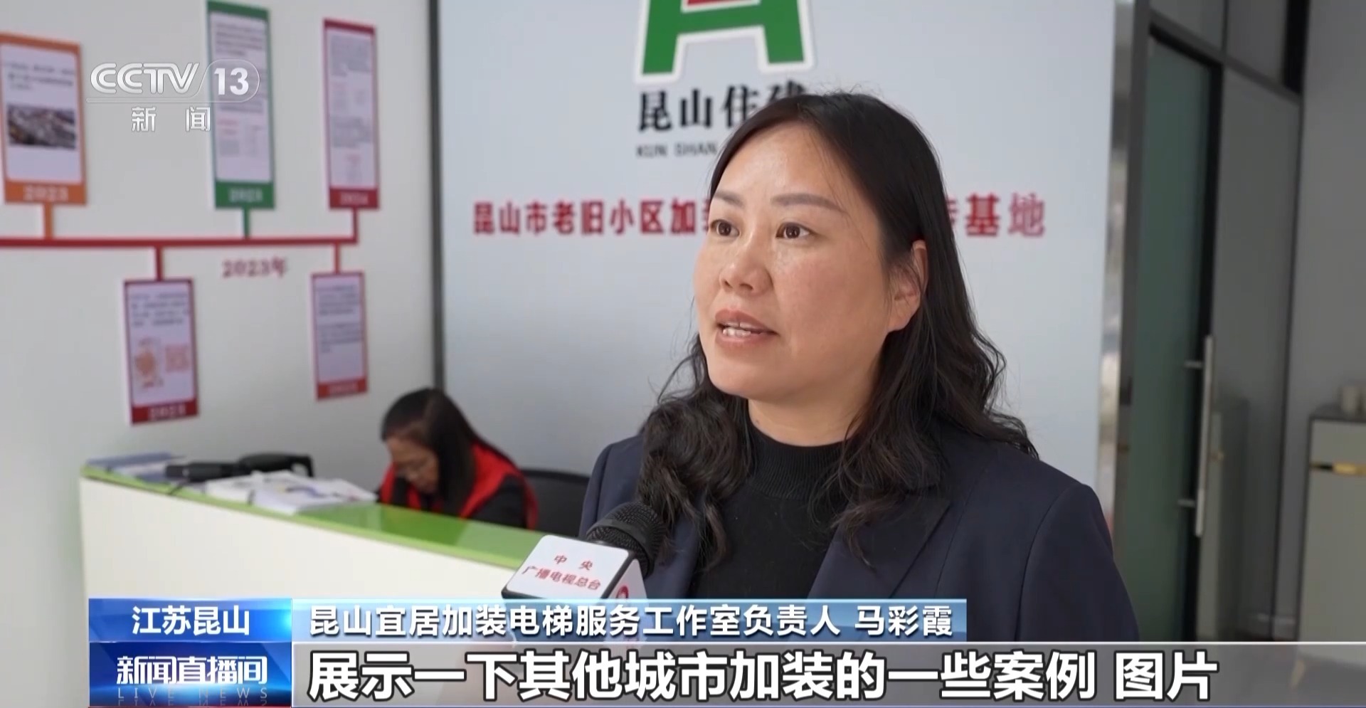 昆山宜居加装电梯服务工作室负责人 马彩霞:展示一下其他城市加装的一些案例图片,他们大概就清楚了,原来是装在后面,所以它的采光影响度是不高的。包括之前有业主说会不会有噪声,我们当时还亲自到电梯,在半夜的时候去测噪声的分贝,后来给他看,他看原来晚上的时候噪声是不影响睡眠的。