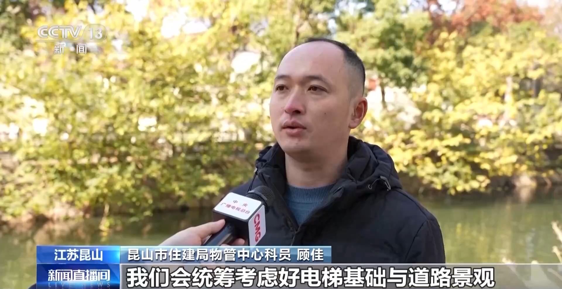 昆山市住建局物管中心科员 顾佳:改造设计前,我们会统筹考虑好电梯基础与道路景观,还有绿化的一些关系。在改造过程中,我们也会统一安排好管线的迁改,以及预留电梯基础,让原本需要3到5年才能完成的工作量,统一集中在3到5个月内完成。