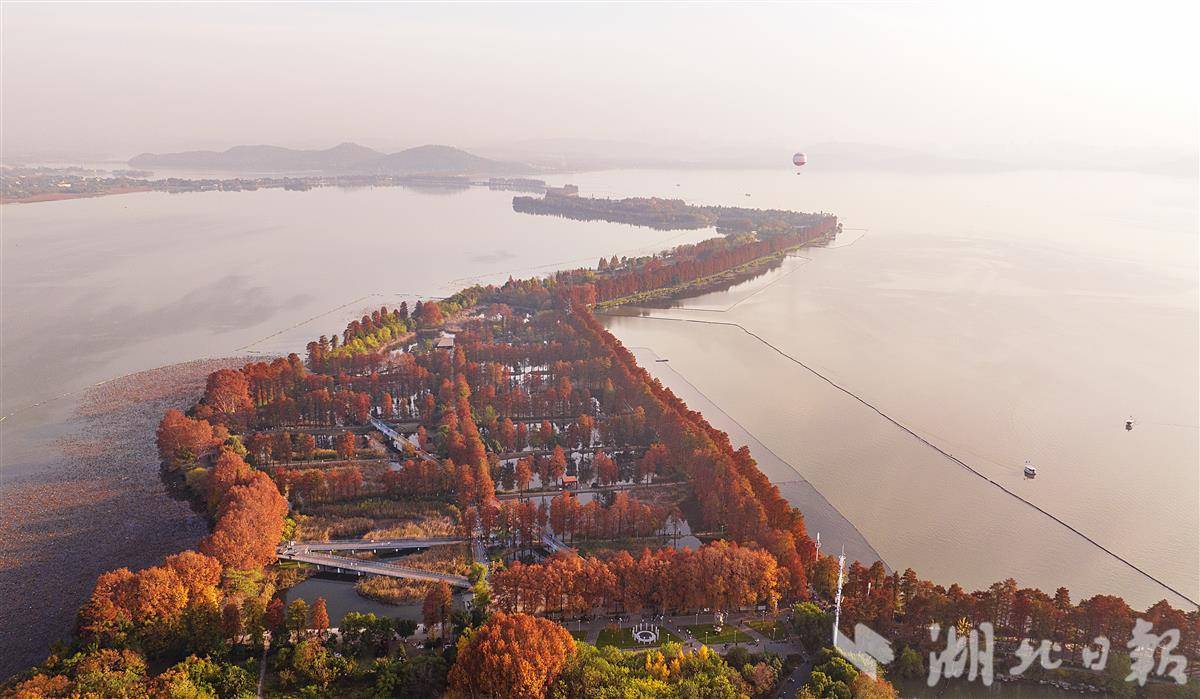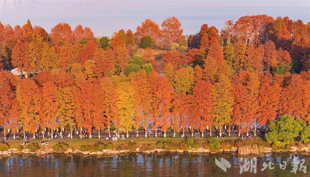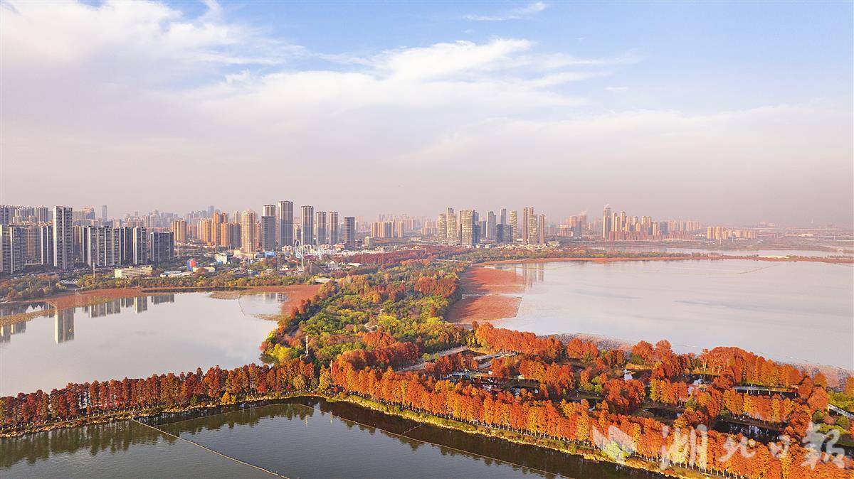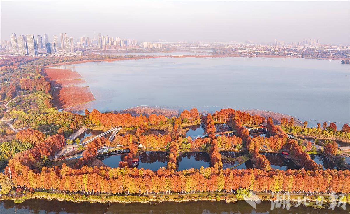 近日,武汉华侨城生态湿地公园内层林尽染,秋色浓浓。