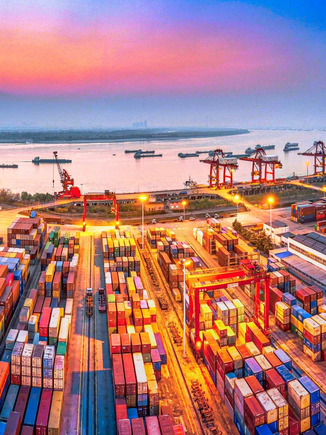 灯火通明的武汉阳逻港(无人机照片)。新华社记者肖艺九 摄