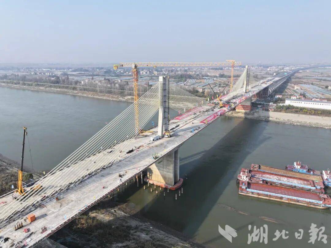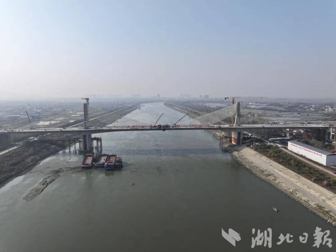 湖北日报讯(记者汪洋、甄子萱、通讯员刘高宇、桂婧)12月8日,随着最后一方混凝土浇筑完成,武汉至天门高速公路关键控制性工程——马口汉江特大桥主桥合龙。合龙后的大桥横跨汉江,如长虹卧波,标志着武天高速全线贯通,为全线通车奠定坚实基础。