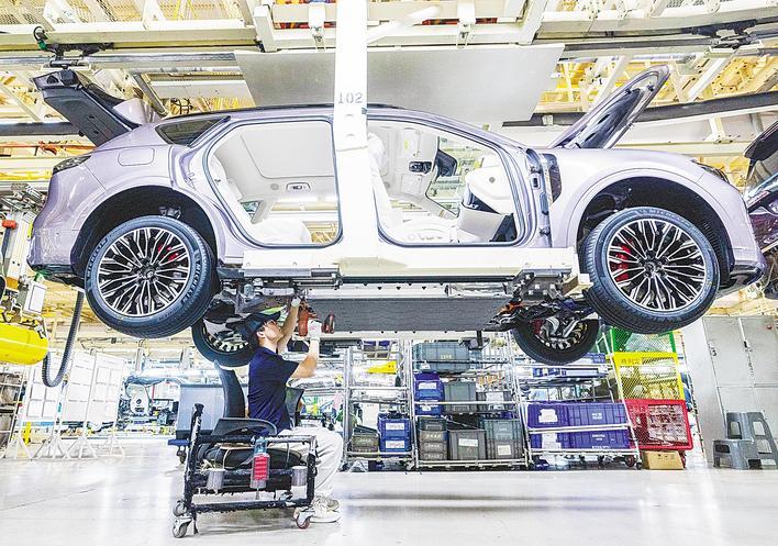 岚图汽车数字化总装车间,工人在流水线上作业。(湖北日报全媒记者 薛婷 摄)