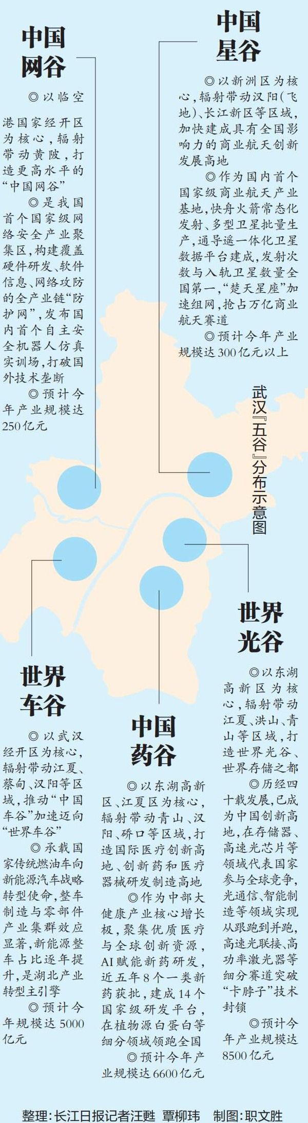 如今,光谷正打造全球科创标杆、车谷重塑汽车产业优势、星谷开拓空天经济新领域、网谷筑牢数字安全屏障、药谷赋能生命健康升级……“五谷”联动,正把武汉的增长线,拉向更宽图景、更高坐标。