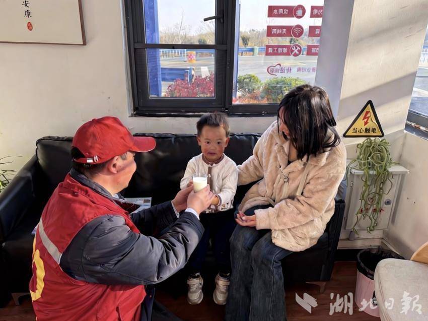 “就这一瓶热牛奶,孩子哭劲儿立马下去了!”12月8日下午3时许,湖北交投京珠运营公司应城北联合党支部爱心小屋内,程女士抱着止住哭闹的三岁孩子,向志愿者连声道谢。