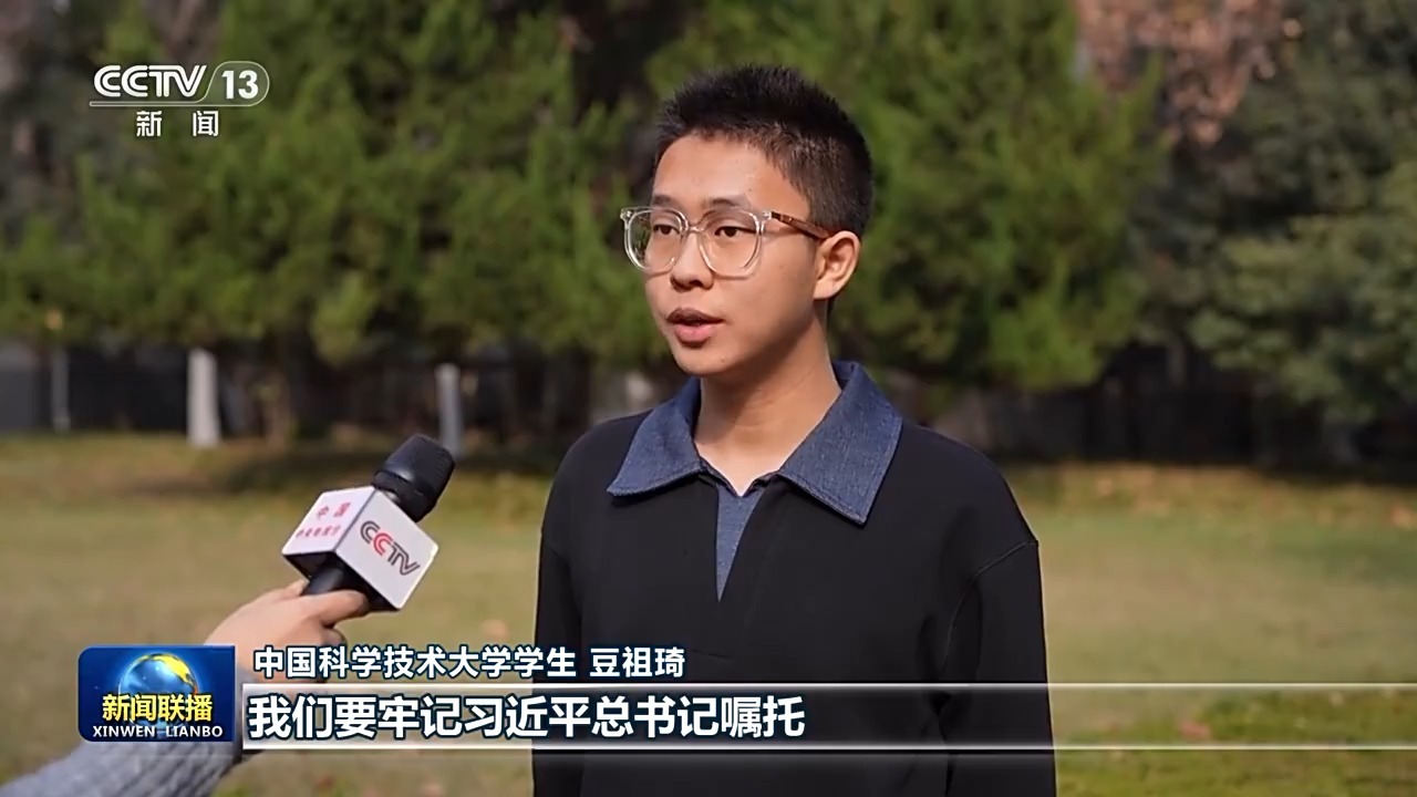 中国科学技术大学学生 豆祖琦:我们要牢记习近平总书记嘱托,认真学习贯彻四中全会精神,始终坚守科技报国的初心,不负韶华、不负时代。在实验室里潜心钻研,在实践中攻坚克难,增强自我创新能力,为中国式现代化贡献青春力量。