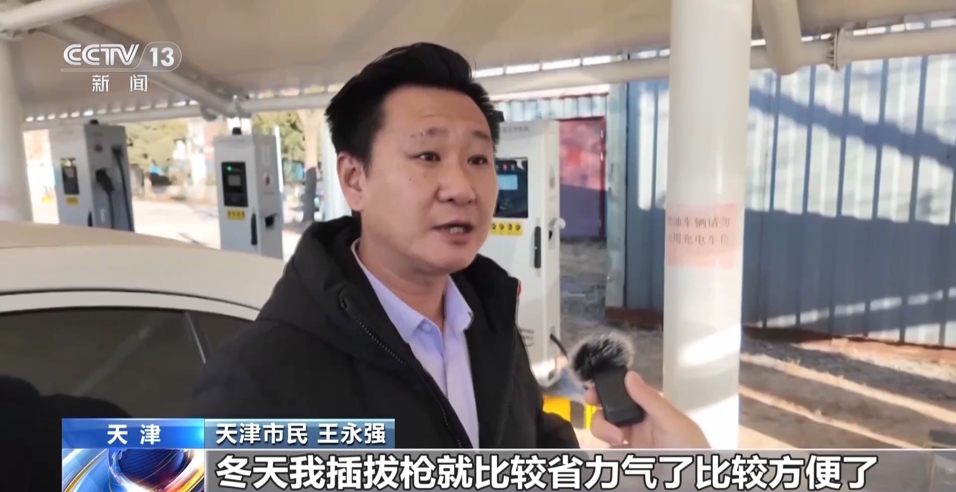 天津市民 王永强:这个站我经常来,发现充电枪都换成细的了,冬天我插拔枪就比较省力气了,比较方便了。