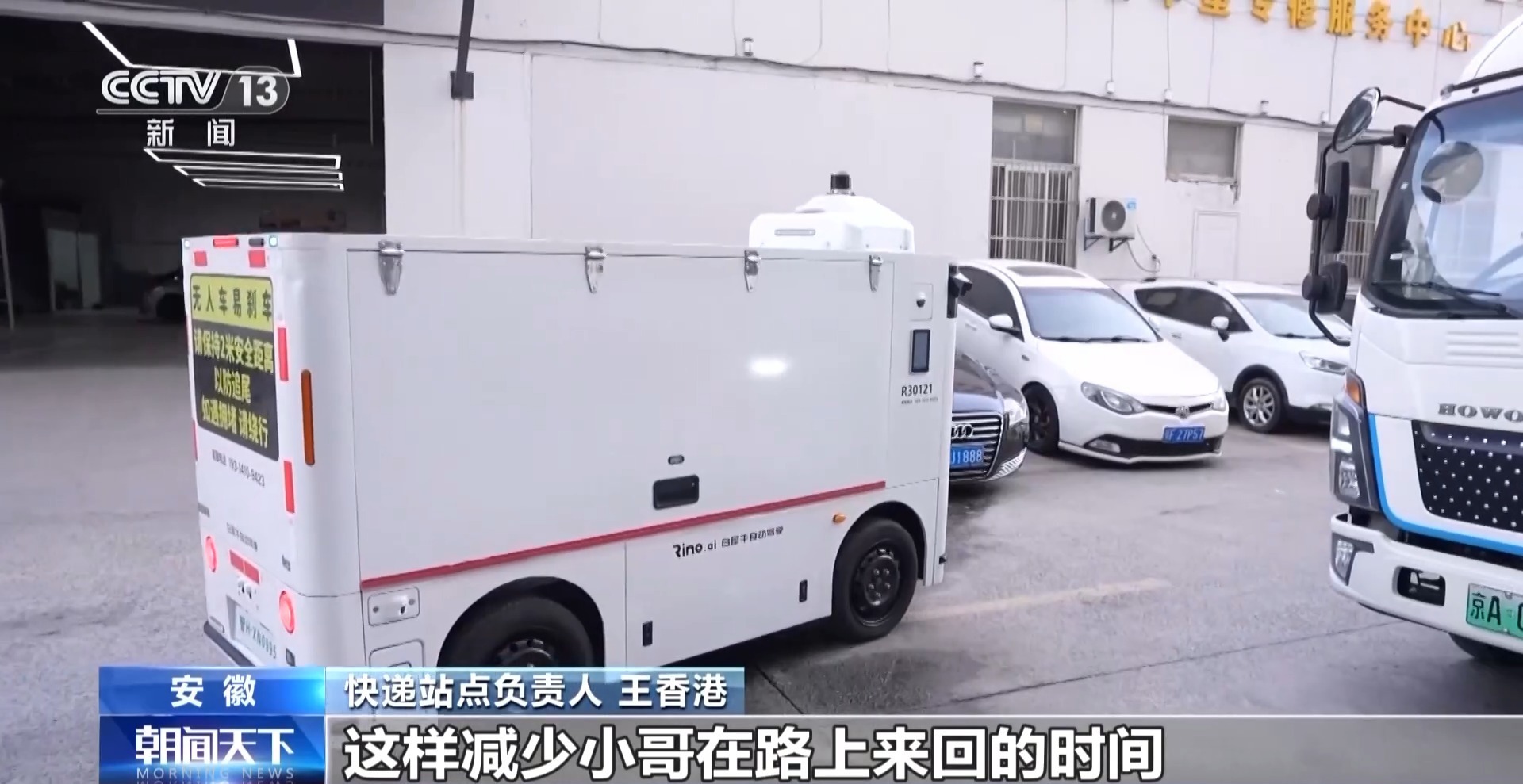 快递站点负责人 王香港:我们网点今年投入了一台全自动的无人车,用于日常的快递接驳,这样减少小哥在路上来回的时间。