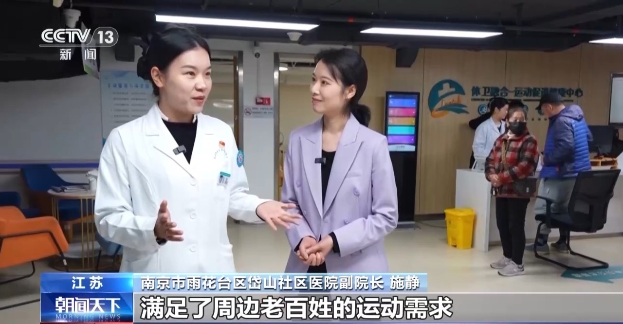 南京市雨花台区岱山社区医院副院长 施静:设备又新品种又多,满足了周边老百姓的运动需求,他们的状态和生活理念都发生了改变。