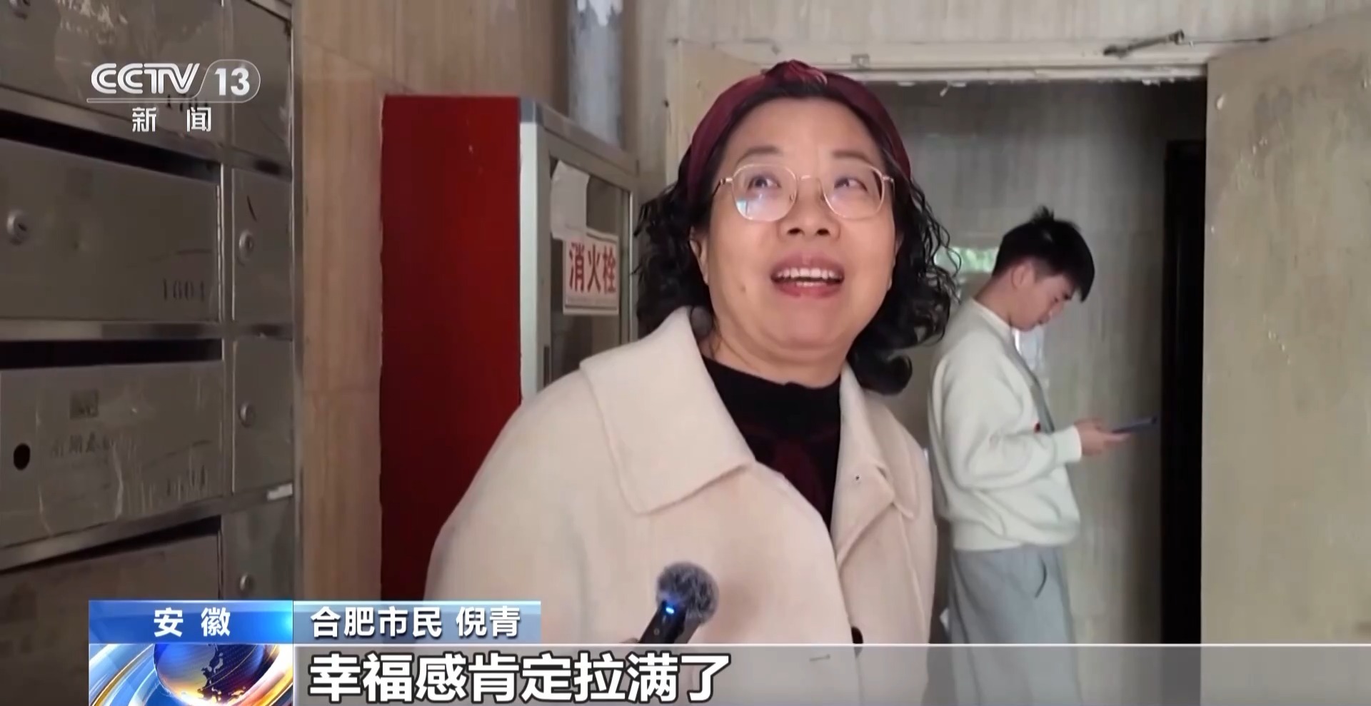 合肥市民 倪青:我们这栋楼现在在更换电梯,幸福感肯定拉满了,我们出行就更方便了。