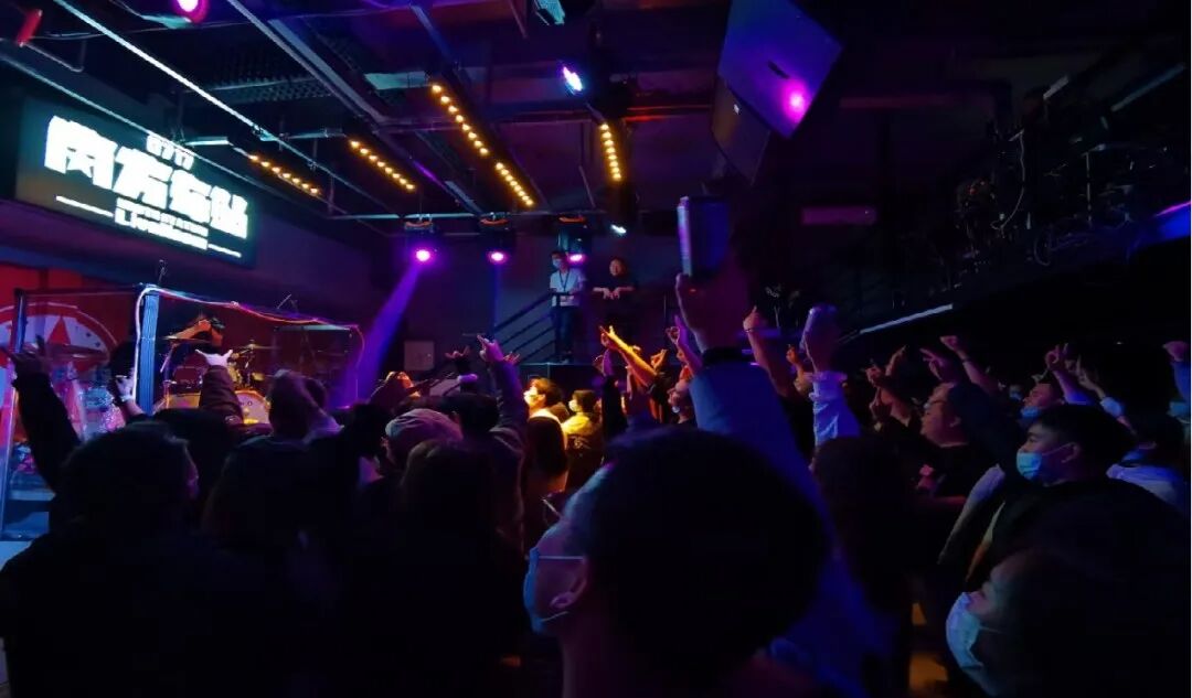 11月27日,南方车站Livehouse在盛景广场试营业。曾登上《乐队的夏天》的独立乐队“虎啸春”在台上掀起音浪,台下,年轻的身体随着节奏齐齐摇摆。