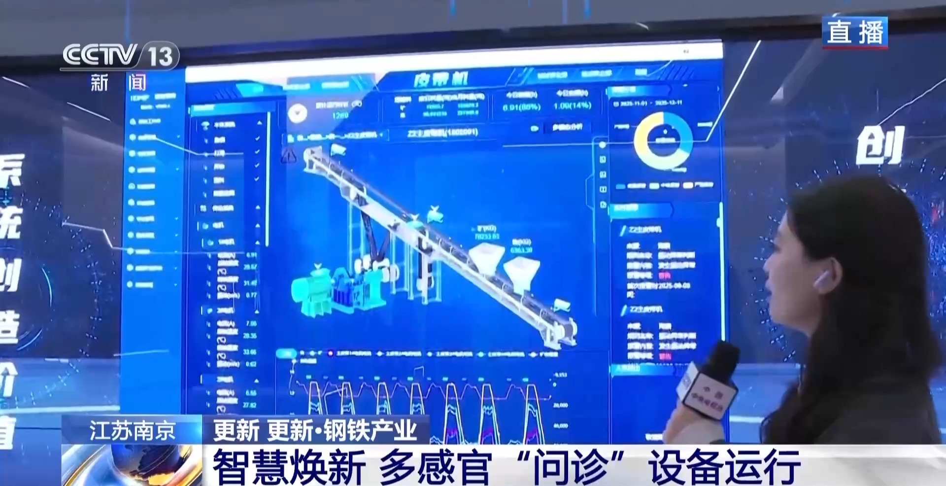 这个“工厂大脑”就是南钢的智慧管理中心。在这里,数据可以下探到每一条产线,甚至穿透到每一个零部件上。在此基础上,今年全新升级的多模态功能更是模拟了人的视觉、听觉、触觉等多个感官,远程对现场设备进行感知,就像是医生给病人问诊一样。