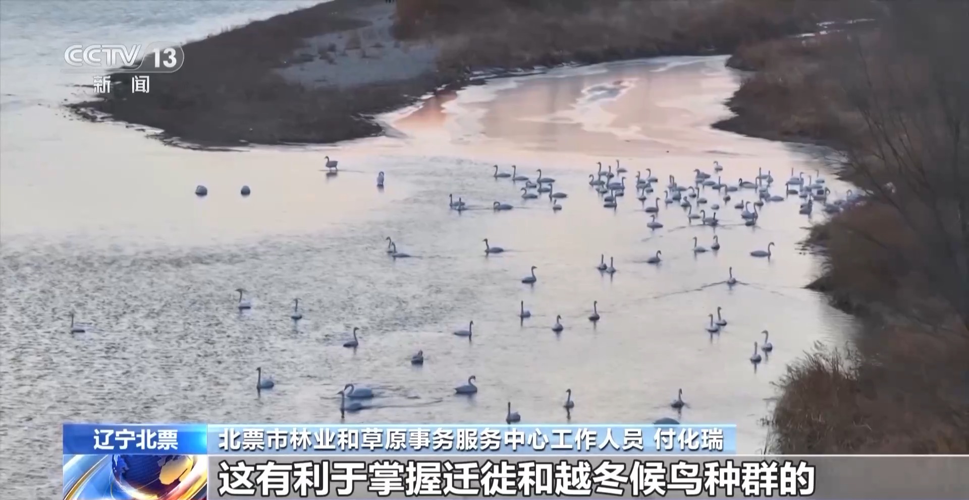 北票市林业和草原事务服务中心工作人员 付化瑞:根据候鸟的习性和分布特点,我们划定了5条巡护路线,这有利于掌握迁徙和越冬候鸟种群的准确数量及活动规律,同时有利于做到对体弱和受伤候鸟及时发现和救助。