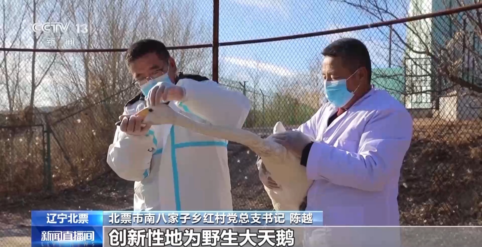 北票市南八家子乡红村党总支书记 陈越:我们村集体积极与专业保险机构联系沟通,创新性地为野生大天鹅上了医疗救助保险,这样就能更好为出现伤病的天鹅第一时间救助提供稳妥的资金保障。