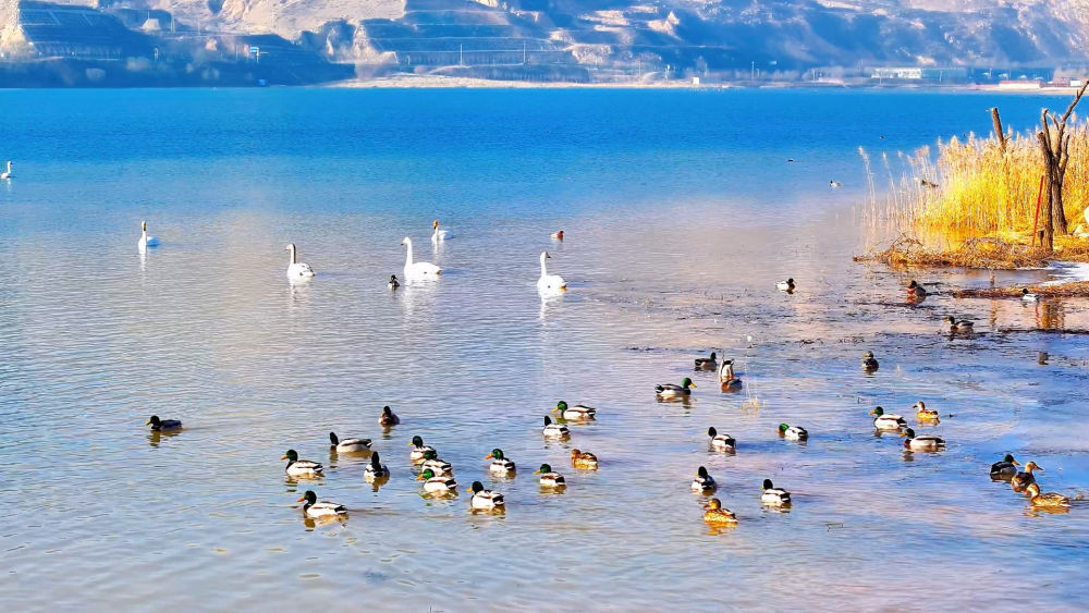 近日,青海省海东市化隆回族自治县的黄河湿地迎来越冬大天鹅。每到越冬季,大天鹅、灰鹤、野鸭等候鸟都会如约来到黄河化隆段。