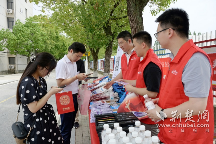 湖北铁路集团运营公司志愿者在黄冈职业技术学院向师生发放法治宣传册