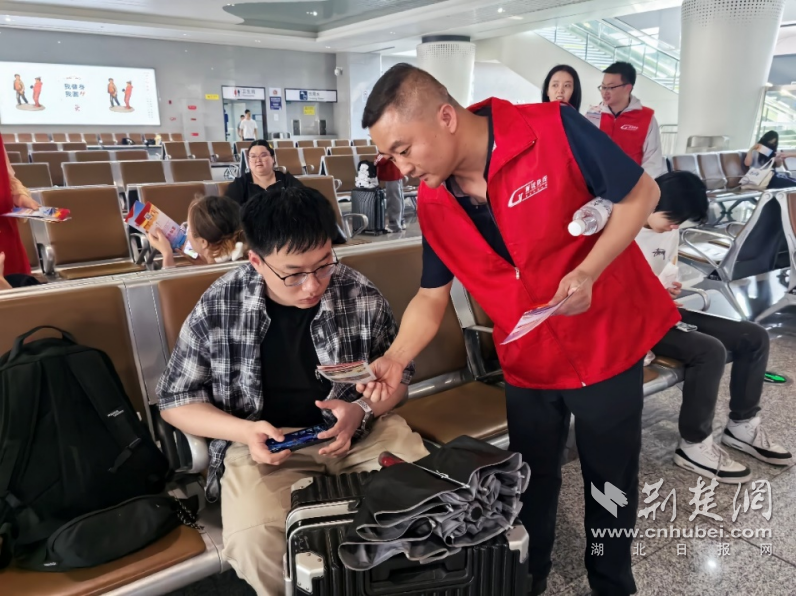 湖北铁路集团运营公司志愿者和法律顾问在武汉东站向旅客讲解民法典