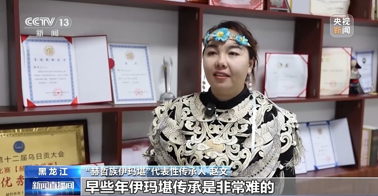 黑龙江省非物质文化遗产保护中心副主任 吴璇:目前,“赫哲族伊玛堪”国家、省、市、县级代表性传承人,从我们申报急需保护名录之初的5位说唱者,一直增加到现在的121人,其中3个人已经去世了,参加“赫哲族伊玛堪”线上线下培训的学员发展到500余人,传承能力稳固提升。