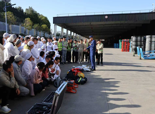 培训结束后,“火焰蓝”宣教队重点演示了消防水带、水枪、破拆器等灭火救援器材的使用方法。员工们认真聆听讲解,积极提问互动,主动上手尝试操作,现场学习氛围浓厚。随后,组织开展实操演练。“火焰蓝”宣教队现场示范了手提式干粉灭火器的正确使用方法,从“提、拔、握、压”四个操作步骤进行逐一拆解,并强调了操作过程中的安全注意事项。随后,员工们轮流上场进行实战演练。“火焰蓝”宣教队耐心指导、及时纠正不规范动作,确保每位参与员工都能熟练掌握操作要点。