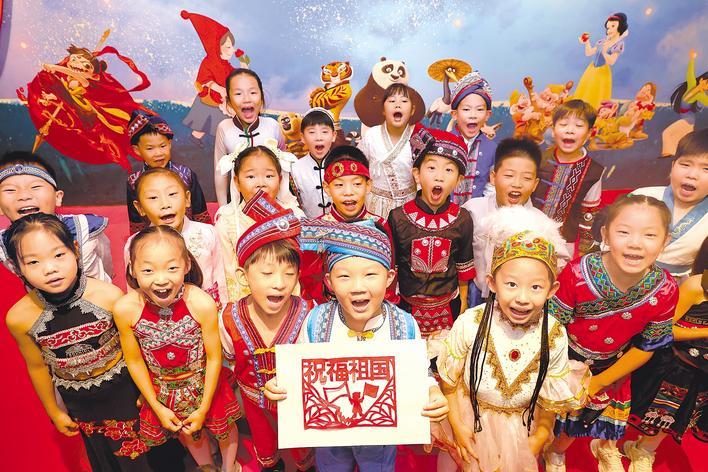 9月25日,武汉市洪山区未来实验外国语学校美林校区,三年级的音乐教室里国旗飘扬、欢歌笑语,孩子们用歌声表达对祖国的祝福。 (湖北日报全媒记者 魏铼 通讯员 雷迪 摄)