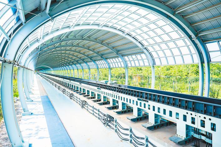 6月16日,由湖北东湖实验室自主研发的“一公里高速磁悬浮测试线”进行首次公开演示,重达1030公斤的试验车在电磁力的推动下,成功跑出每小时650公里的“极速”。 (湖北日报全媒记者 魏铼 摄)