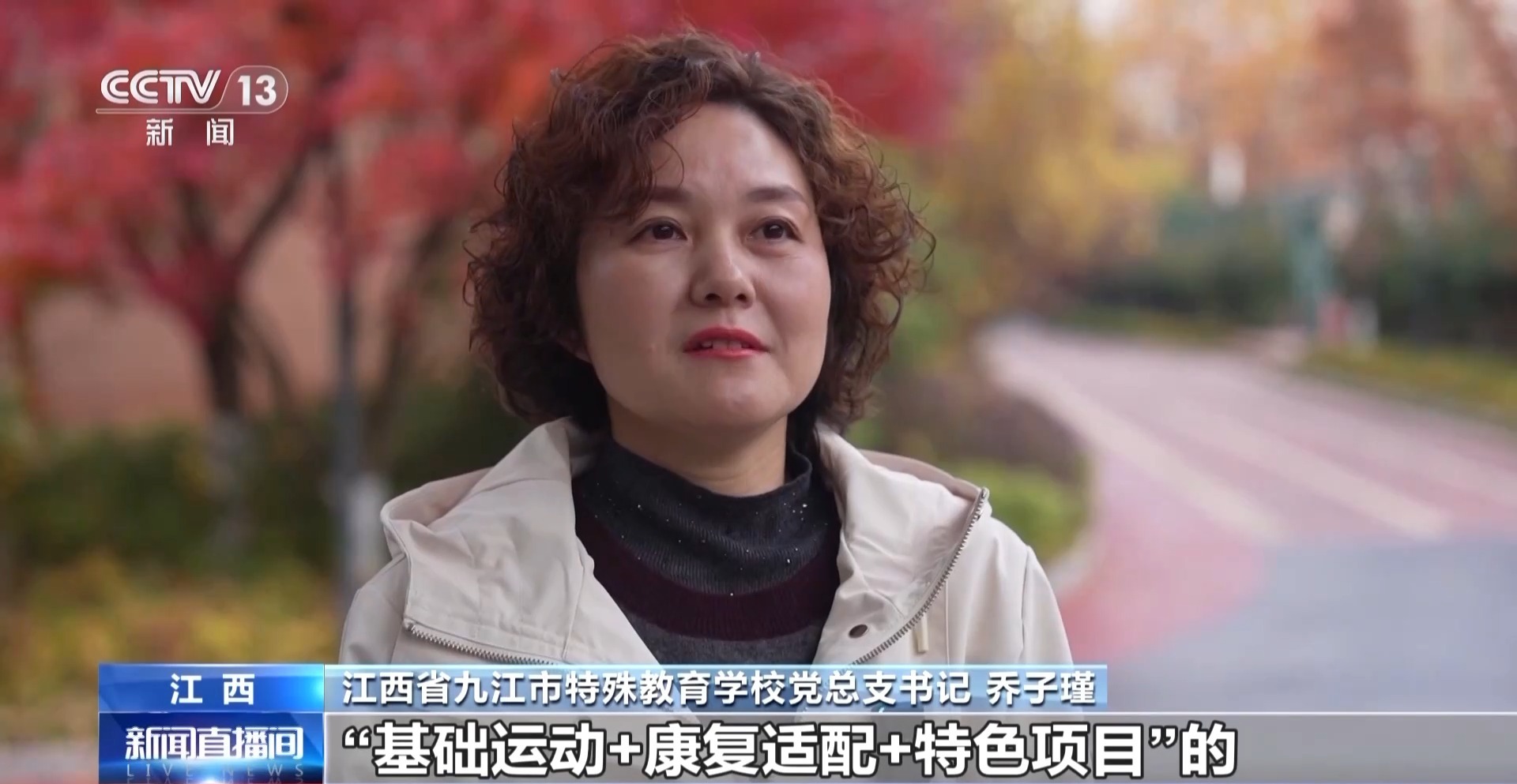 江西省九江市特殊教育学校党总支书记 乔子瑾:学校构建了“基础运动+康复适配+特色项目”的课程体系,主要是针对听障和培智学生的差异,开设了排舞课、跳绳课、柔力球、特奥足球、篮球、轮滑、滚球等一系列体育课程,让残障孩子也能够得到科学有效训练。