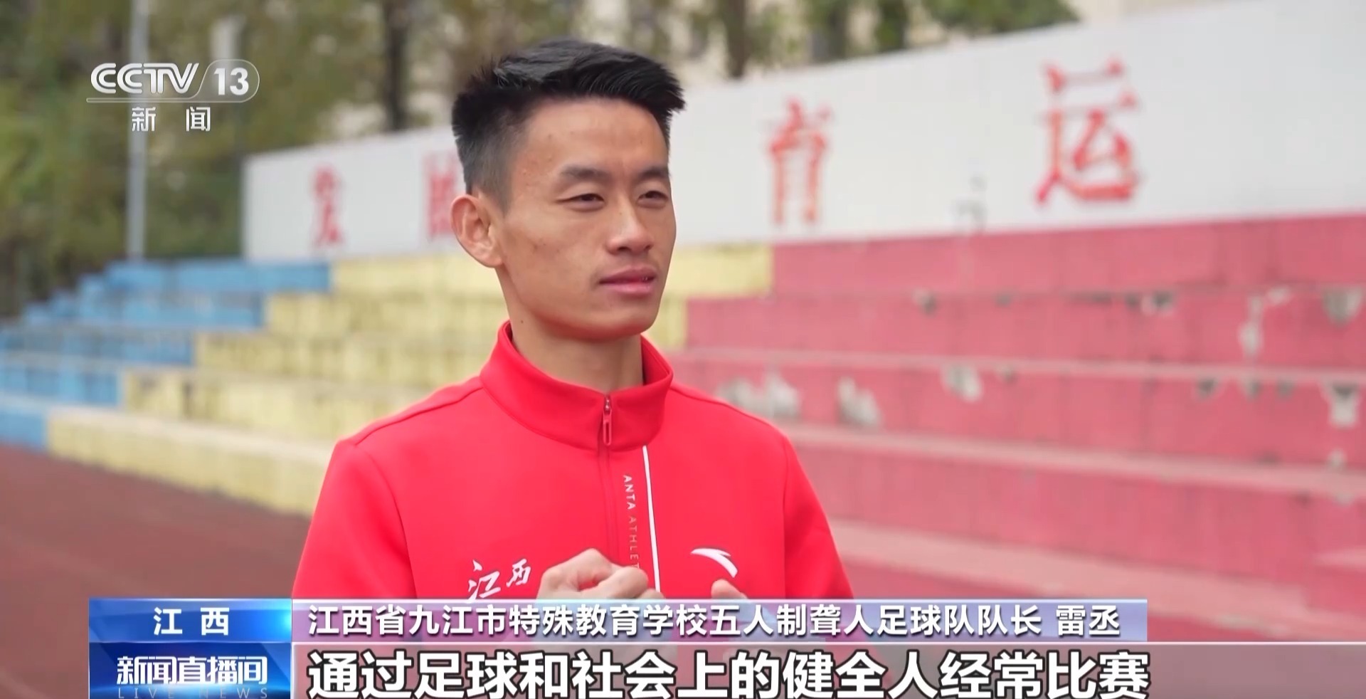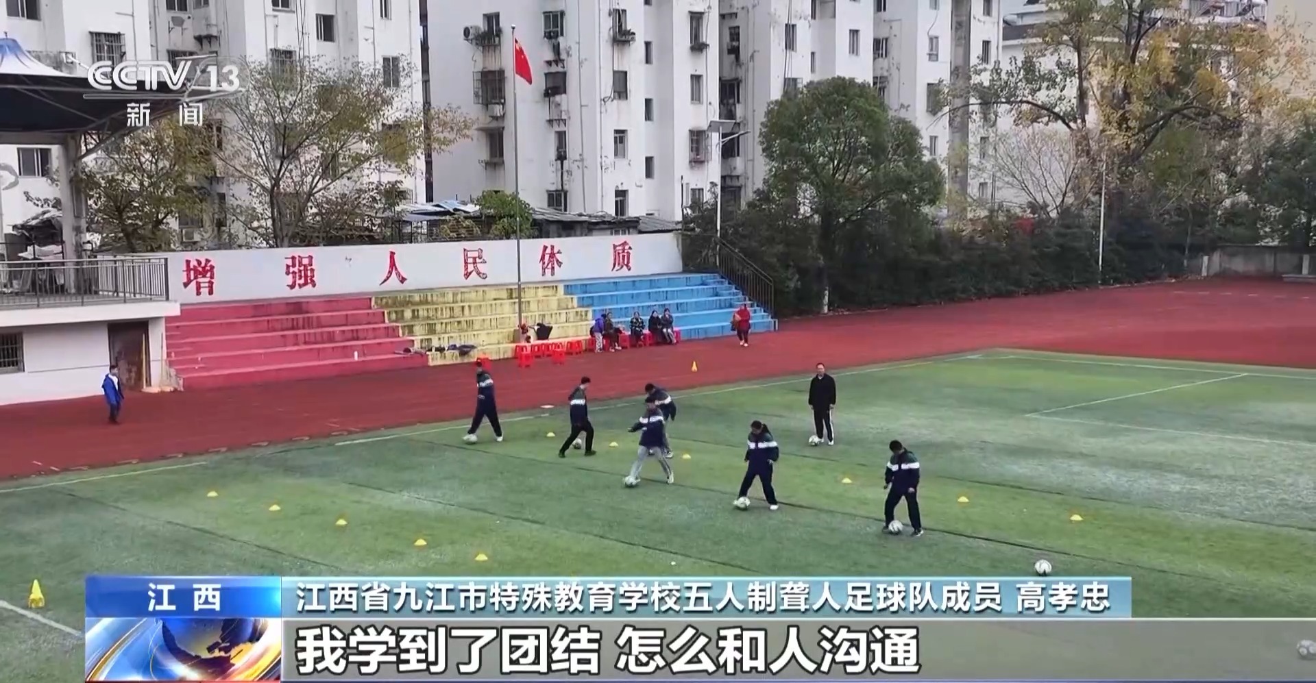 江西省九江市特殊教育学校五人制聋人足球队成员 高孝忠:刚来学校读书的时候,我的脑子都是糊的,什么都不知道。老师带我们踢足球之后,教了很多足球的知识。